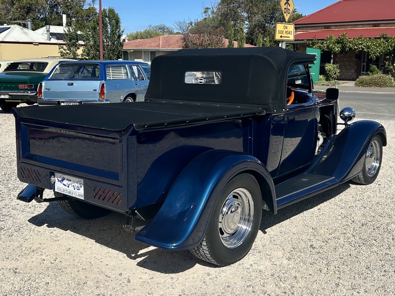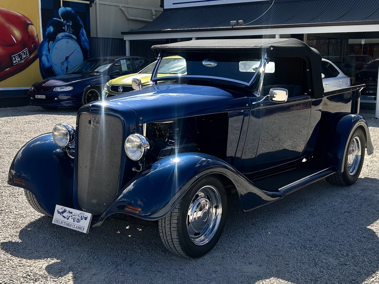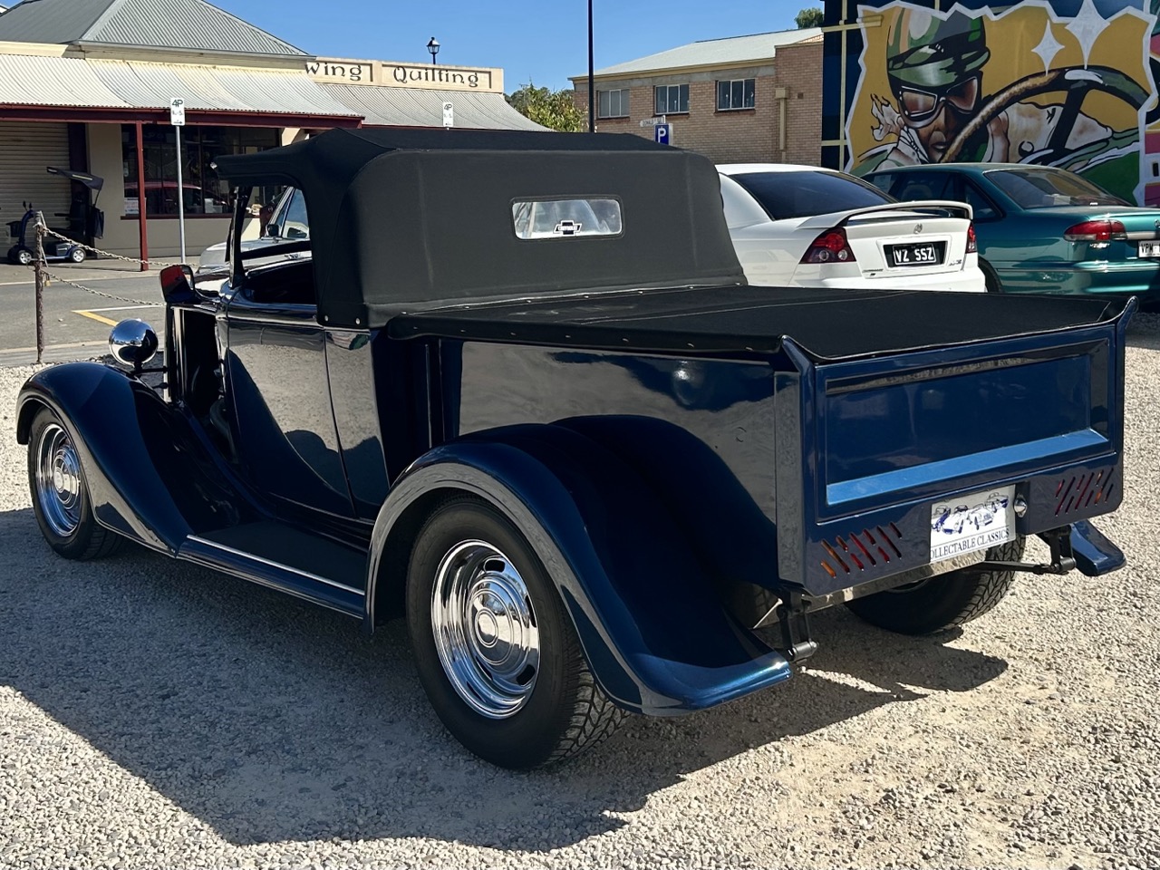 If you're looking for something unique, this 1934 Chevrolet Utility Hot Rod is guaranteed to turn heads. Powered by a 350ci (5.7L) Chevrolet motor with a 600 Holley Vacuum Secondary Carburettor, the hotrod has plenty of punch. This is transferred to a 3-speed Turbo 400 automatic transmission, which makes the car a very driver-friendly vehicle. This Hot Rod features an all-steel cab and tray, removable soft-top roof, fabric tonneau cover, side curtains, rack and pinion steering, and disk brakes all round with a Holden front and Ford rear. Presented in a stunning dark blue with the classic Hot Rod open bonnet, this car is an artwork in its own right that is only truly appreciated in person. You could not recreate this car for the asking price, so this truly is incredible value for money. Better yet, the Hot Rod is already registered here in SA under historic registration.