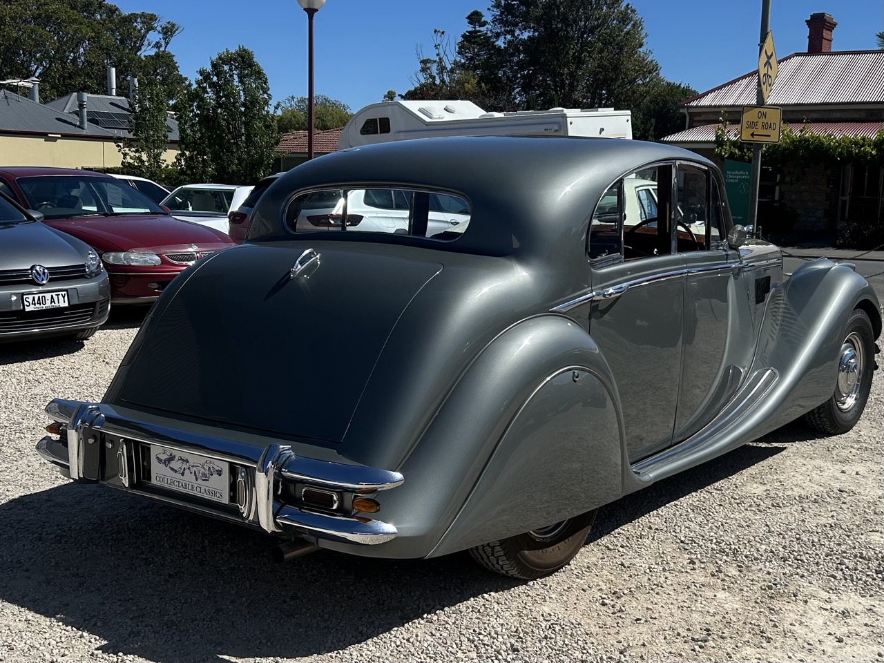 Just arrived - This 1950 Jaguar MkV 3½ Litre Saloon is a beautifully presented classic. The MkV was a wonderfully popular car in its time, produced alongside the XK120, but outselling it by approximately 5,000 cars per year. Over their four-year run, a total of 10,499 were produced, with 5923 of those being RHD 3½L. This MkV is a wonderful example. Powered by the 3485 cc '3½L' 6 cylinder engine and a four-speed single-helical manual gearbox, the Jaguar has been under long-term ownership and has received a complete restoration. This saw the car being stripped back to bare metal and rust fixed before being resprayed, and the interior completely retrimmed. Despite being an older restoration, the Jaguar presents beautifully throughout. Finished in a gorgeous silver, open the suicide doors for a seat inside the beautiful red interior. It is presented in wonderful condition for the age of the vehicle and is a true testament to its owner. The Jaguar also comes with an exceptional file, which includes photos documenting the restoration process and receipts dating back to 1964 from Bryson Industries. Complete with the full toolkit, this Jag is eligible for historic registration, which greatly minimises on-road costs. This is a wonderful classic Sunday cruiser, with so much style and classic charm, ready for its next custodian.  Contact Ben Finnis - 0411 744 190. Interstate transport can be arranged. Finance available. All cars are inspected by our fully trained mechanics. 70+ Classics are in stock, and more are arriving daily. Go to http://www.collectableclassiccars.com.au MORE CLASSIC CARS WANTED | Collectable Classic Cars & Bikes | Est 1989 | 5-7 Rankine St, Strathalbyn, SA 5255.