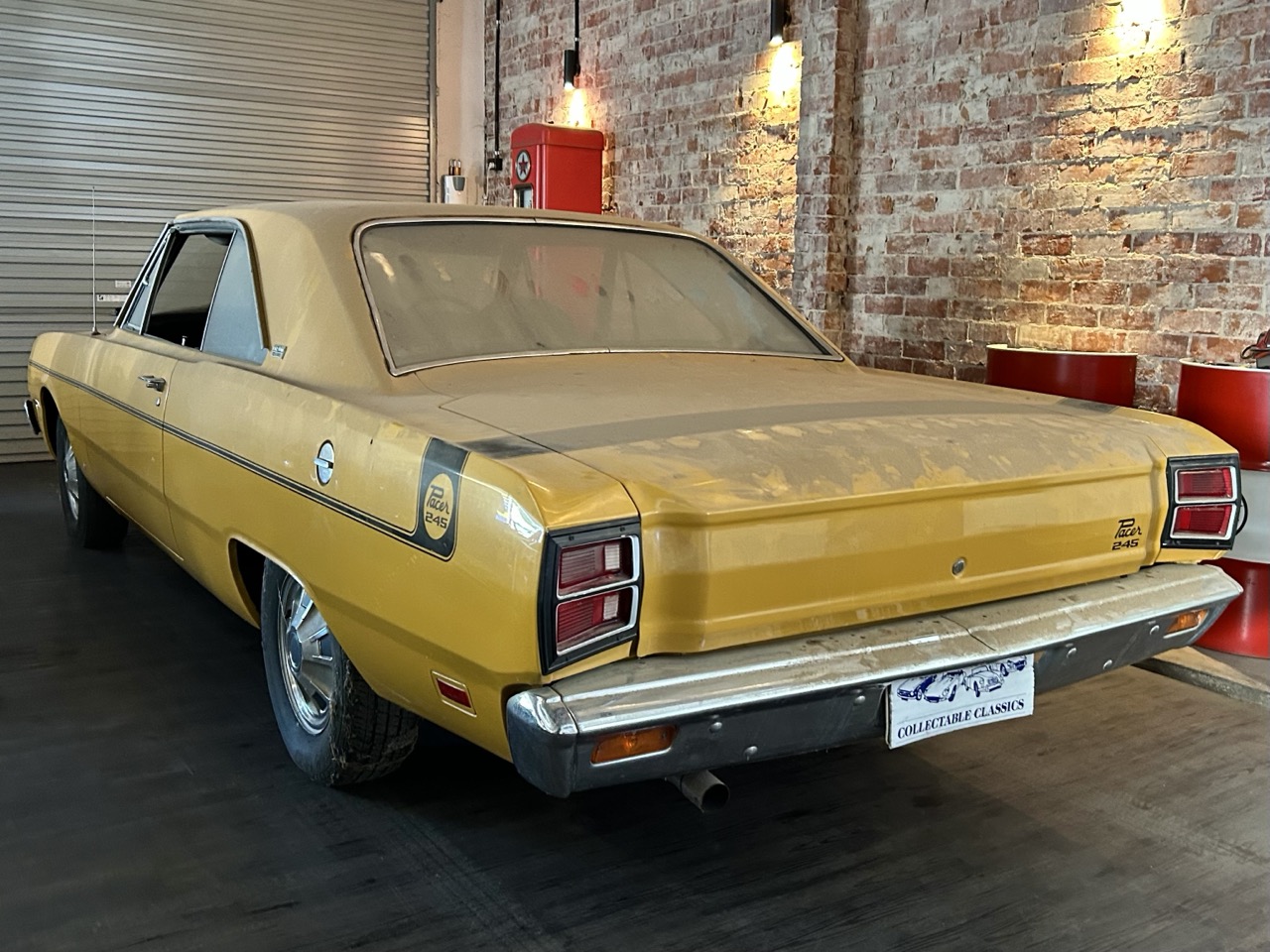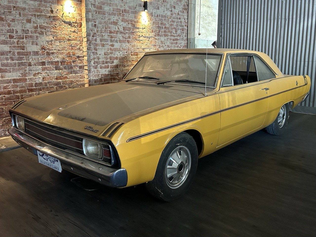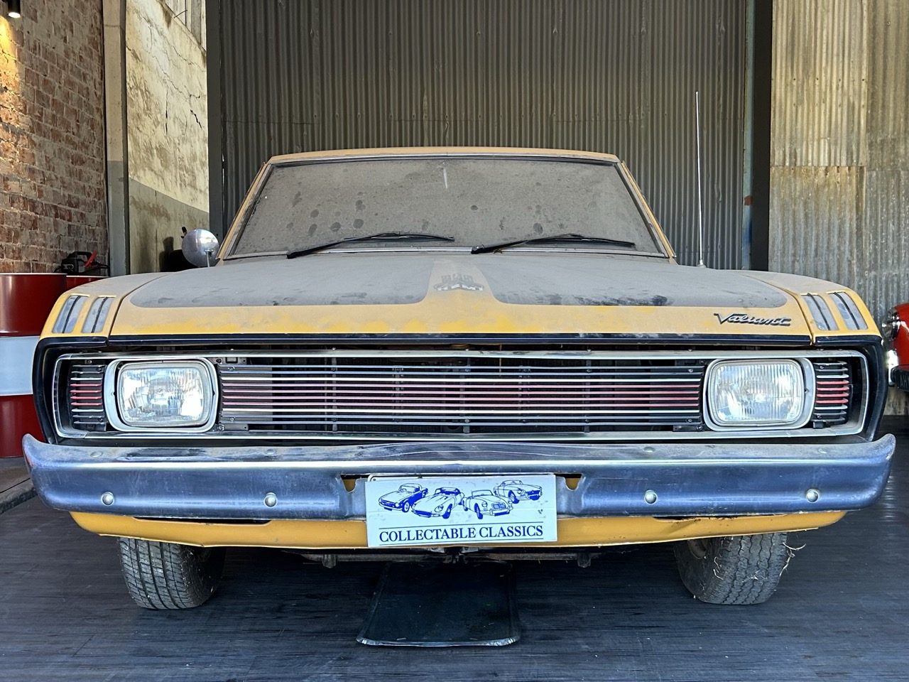 Just arrived - This is a 1971 Chrysler Valiant VG Pacer in a rare two-door hardtop model. Sold originally from Metro Motors, this Pacer came with factory options of a 'sure-grip' differential and high-speed radial tyres. The Pacer is a two-owner car, purchased by the current owner in 1990, after which it was stored away. It is powered by the original 245ci (4L) 6-cylinder Hemi motor and 3-speed manual transmission. This car remains a very neat package and has gone untouched for the last 35 years. Finished in its original Hot Mustard, the VG presents very nicely, and the areas of usual aging are rust-free. Open the door to the Black interior, and you will see the car has retained its tombstone seats, which are in lovely condition, along with the factory radio. To complete the package, the Pacer comes with its original books and will be sold in its current condition - barn dust included.