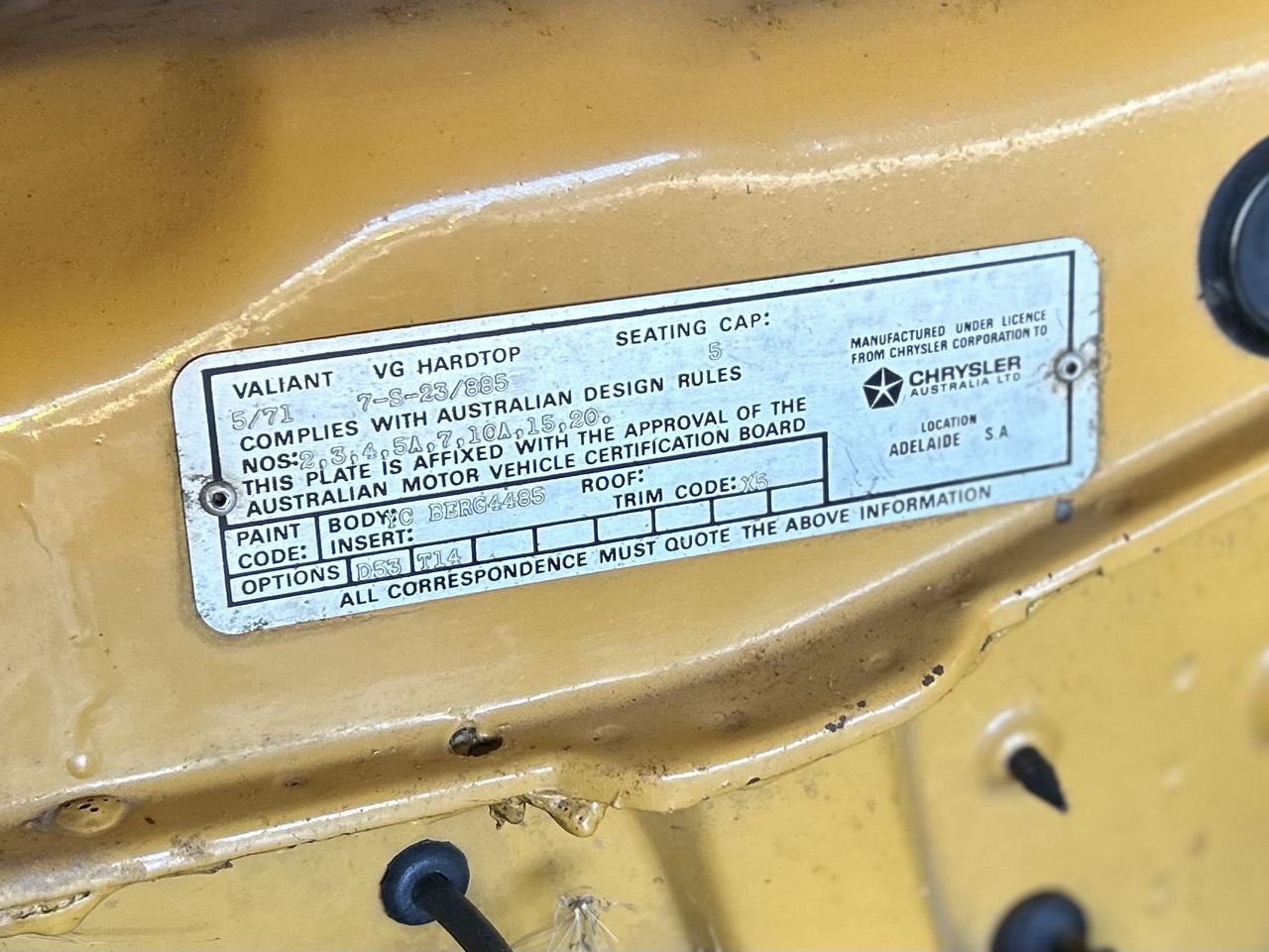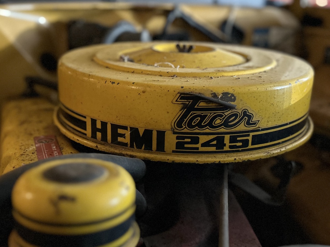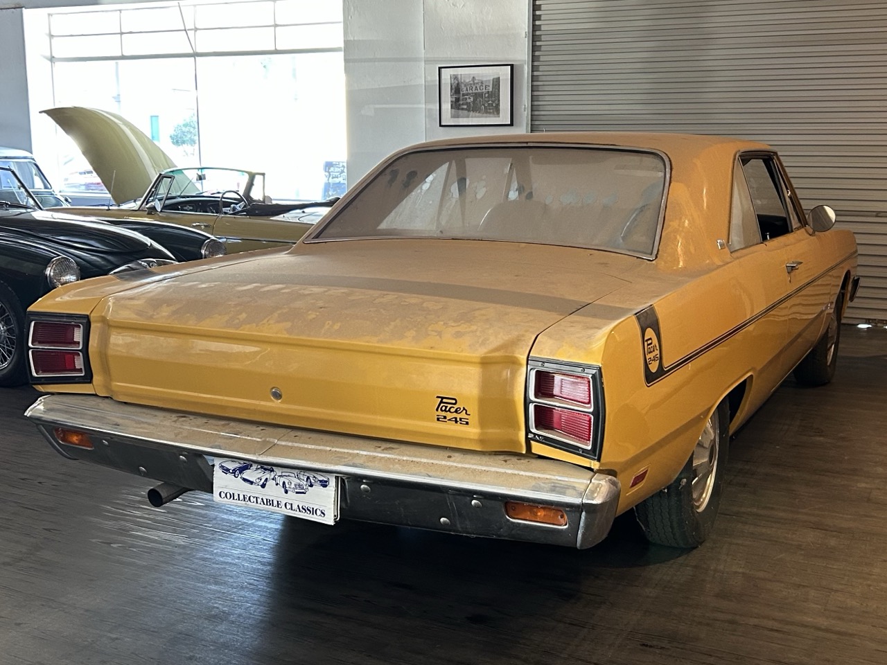 Just arrived - This is a 1971 Chrysler Valiant VG Pacer in a rare two-door hardtop model. Sold originally from Metro Motors, this Pacer came with factory options of a 'sure-grip' differential and high-speed radial tyres. The Pacer is a two-owner car, purchased by the current owner in 1990, after which it was stored away. It is powered by the original 245ci (4L) 6-cylinder Hemi motor and 3-speed manual transmission. This car remains a very neat package and has gone untouched for the last 35 years. Finished in its original Hot Mustard, the VG presents very nicely, and the areas of usual aging are rust-free. Open the door to the Black interior, and you will see the car has retained its tombstone seats, which are in lovely condition, along with the factory radio. To complete the package, the Pacer comes with its original books and will be sold in its current condition - barn dust included.