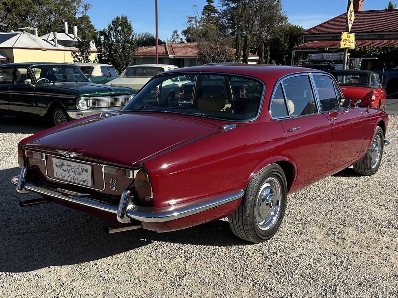 This 1971 Jaguar XJ6 is a wonderful option for comfortable classic car motoring. It is driven by a 4.2L 'XK' 6 cylinder motor and a 3-speed Borg-Warner 'Model 12' automatic transmission, with air conditioning and power steering to complete the package. This XJ6 is a four-owner vehicle, originally owned and then sold by Patterson Motors Melbourne. The third owner, an established Euro car mechanic, then replaced the motor with another 4.2L Jaguar engine. Additionally, the power steering unit and transmission were replaced. The headlining and woodwork were restored, along with the cooling system upgraded. The XJ6's suspension was also upgraded to E-type suspension, which has the car sitting a little lower than standard and improves the handling. The car then became part of the owner's private Jaguar collection until it was sold by Lou Guthry Motors to its current owner in 2015. in the past 10 years of ownership, the current owner has reconditioned the transmission, air compressor, along with new hoses, and the power brake unit. Both front and rear windscreens have been removed and resealed, and now the XJ6 is ready to join its fifth owner. The red exterior is in good condition for the age of the vehicle, along with a very neat interior. Complete with original books and service history, the XJ6 is a great classic sedan with room for the whole family Contact Ben Finnis - 0411 744 190. Interstate transport can be arranged. Finance available. All cars are inspected by our fully trained mechanics. 60+ Classics are in stock, and more are arriving daily. Go to http://www.collectableclassiccars.com.au MORE CLASSIC CARS WANTED. Collectable Classic Cars & Bikes - Strathalbyn SA Est 1989. Back