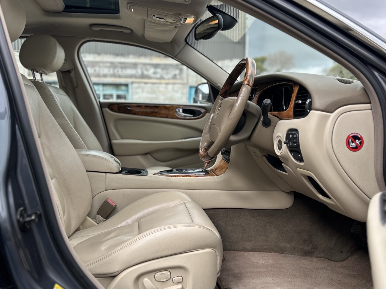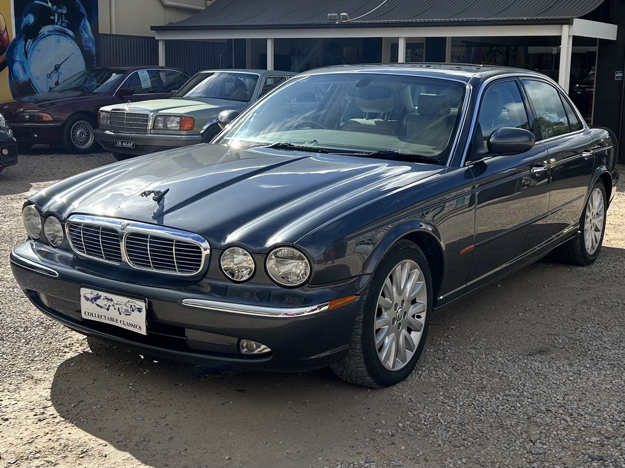 Just arrived - This 2004 Jaguar XJ8 X350 Sovereign is a well-maintained vehicle and a great future classic. Sold new from Solitare Automotive in 2005, the XJ8 was delivered with a 3.5L 'AJ' V8 and a 6-speed '6HP26' automatic transmission. The metallic grey exterior is accentuated brilliantly by chrome trim and a beige interior with wood accents. It has luxuries like automatic headlights, rain-sensing wipers, parking sensors, electric seats, an electric parking brake and an 8-speaker sound system. The display screen demonstrates the CD radio with Bluetooth phone connectivity, the navigation system, and dual-zone climate control. There is also an electric glass sunroof, a multifunctional steering wheel, traction control, dynamic stability control, and cruise control. With the self-levelling adaptive air suspension, the ride is incredibly smooth and comfortable. The current owner has preserved this car very well, replacing a few things like the air suspension compressor, both front air struts, the thermostat, thermostat housing, and water pump. This XJ8 is a wonderful example of a modern classic, ready to take out on the weekends.