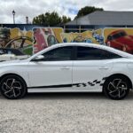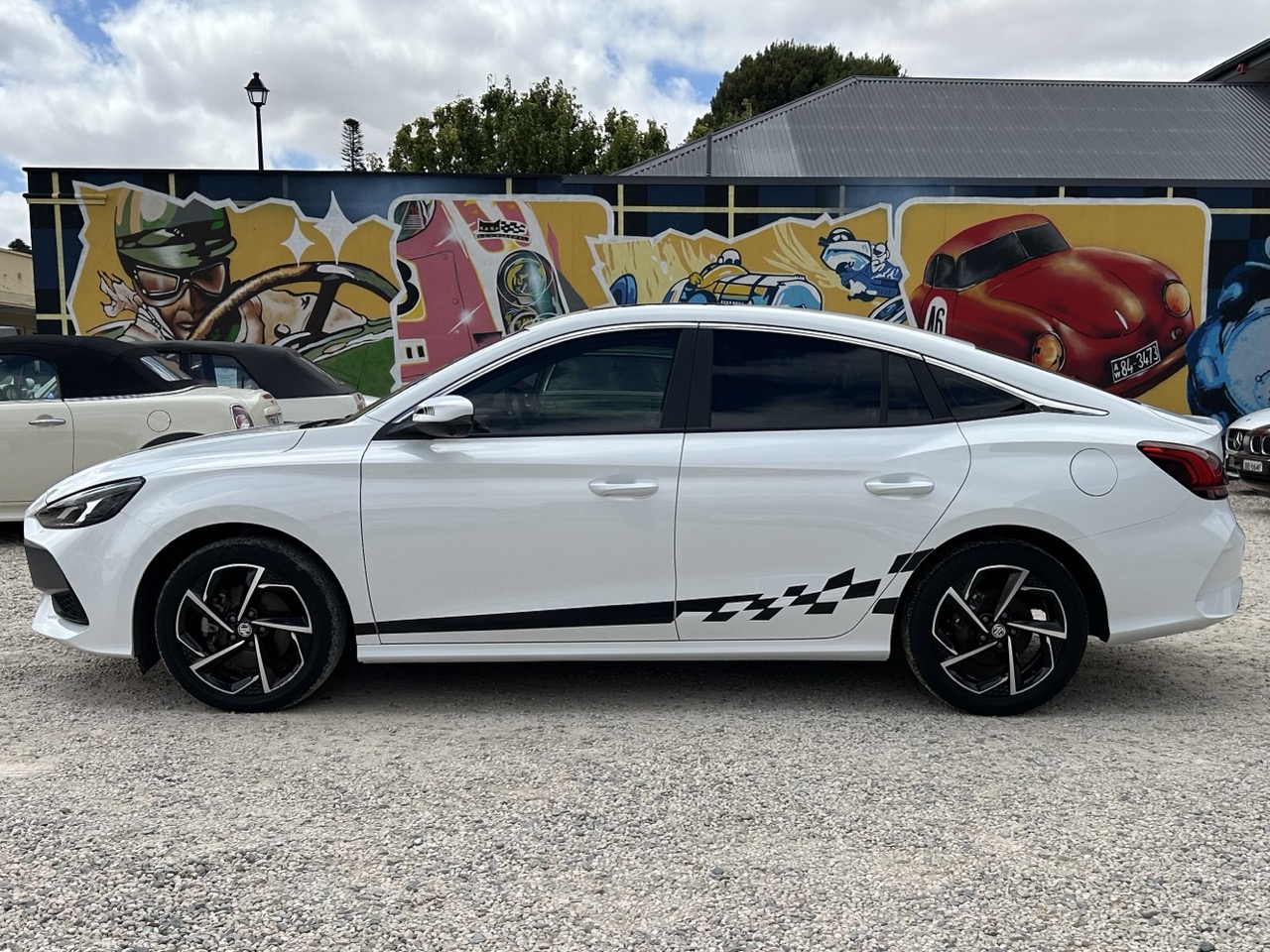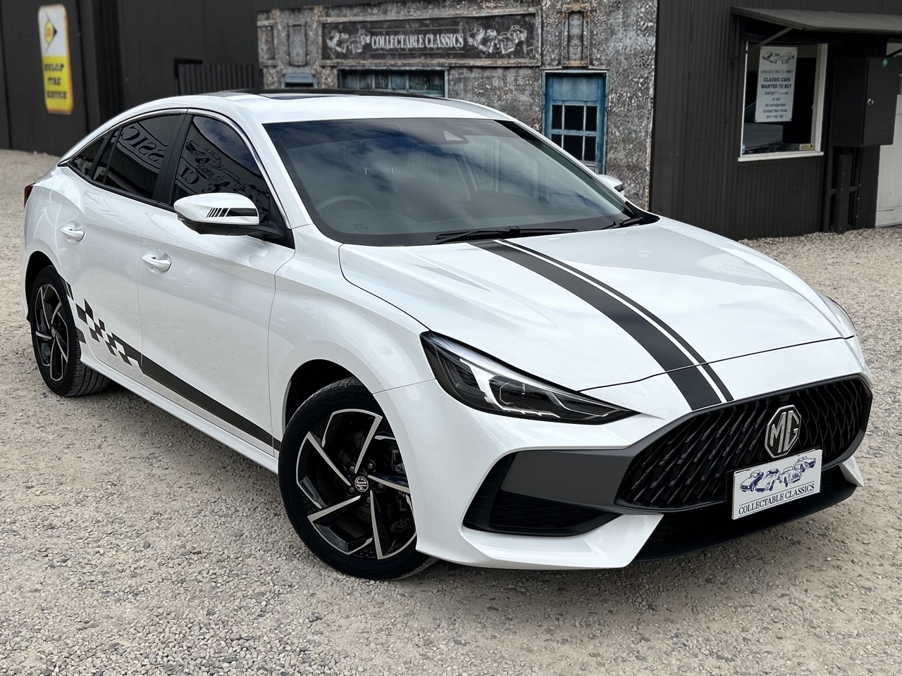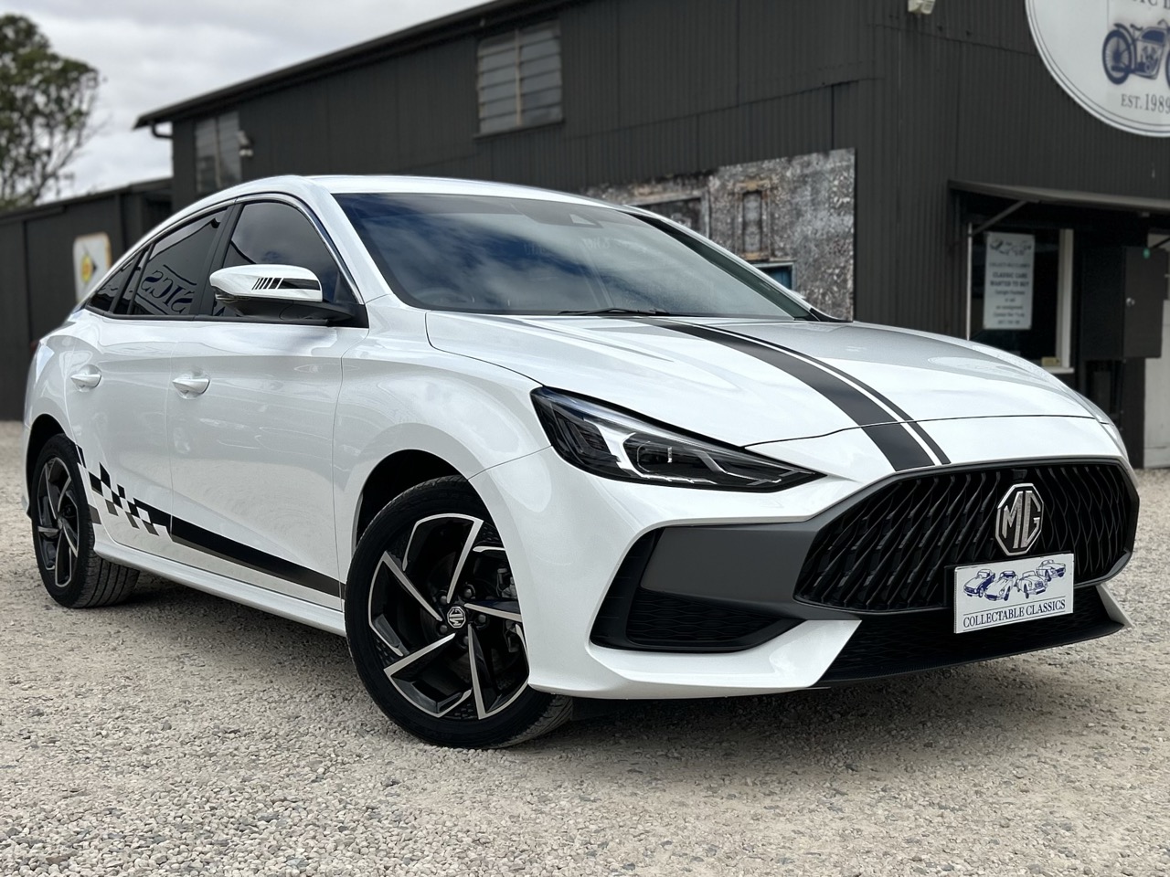 Just arrived - This 2023 MG MG5 Turbo Essence is fantastic value for money. Sold new at Hamilton MG, this is a one-owner car that has travelled a mere 37,589km. The MG5 is powered by a 1.5L turbo 4-cylinder and a 7-speed DCT automatic transmission and paddle shifters. Finished in Dover white with black striped accents, the MG looks quite sporty. The interior features black faux-leather upholstery with red stitching and includes a 10-inch touchscreen display, Apple CarPlay and Android Auto compatibility, Bluetooth connectivity, navigation, a reversing camera with 360-degree and 3D views, a multi-function steering wheel, air conditioning, and cruise control. There are plenty of safety features equipped in the MG5, like anti-lock braking, autonomous emergency braking, cornering brake control, emergency brake assists, electronic brake force distribution, hill hold, and impact-sensing auto door unlock. Sitting on a set of 17-inch wheels, the MG5 also comes with a tilt-and-slide sunroof and is presented in fantastic condition both inside and out. It has plenty of room for the whole family, but is compact enough for comfortable city driving. The MG5 comes with complete books and history, a clear PPSR report, and rest assured as it comes with a balance of new car warranty until 2031. This is the perfect daily driver, featuring all the modern conveniences and low kilometers at a great, affordable price.