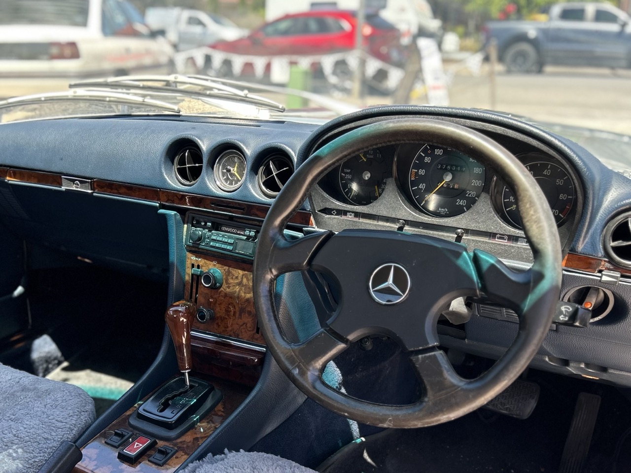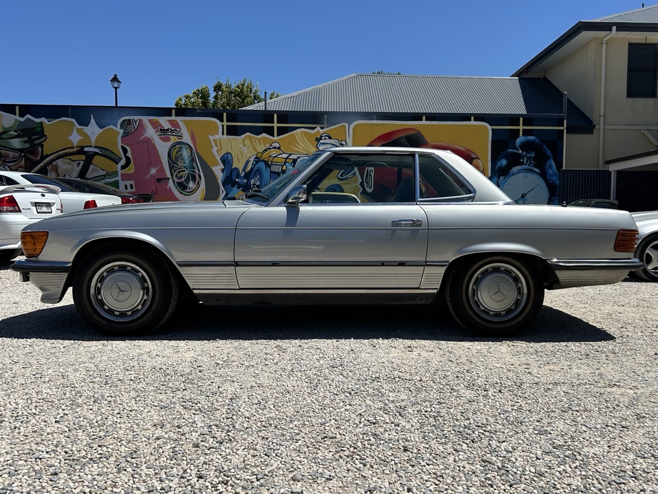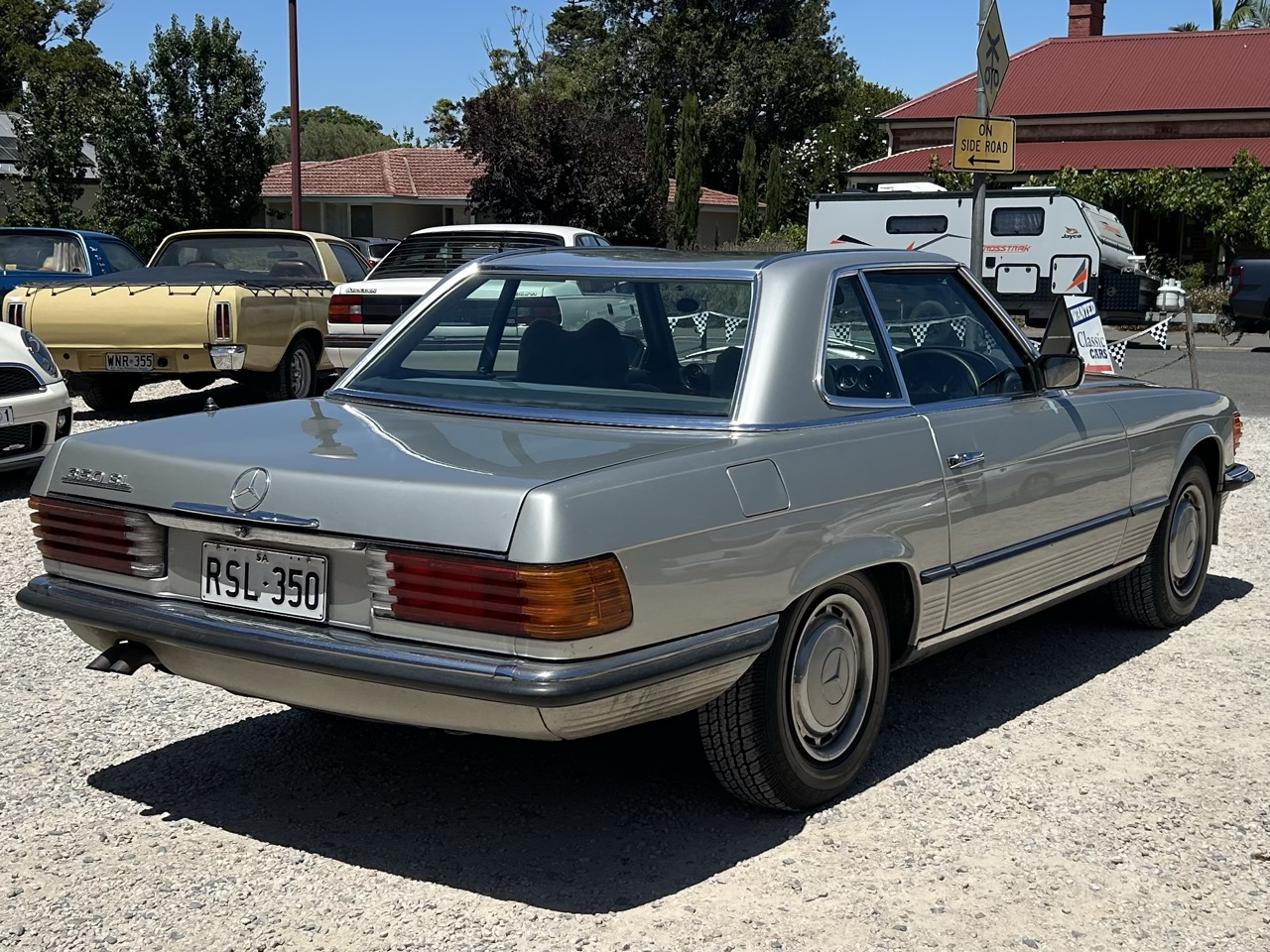 This 1972 Mercedes-Benz 350SL is a lovely example of a classic with modern features. Driven by a 3.5L fuel injected V8 and a 3-speed automatic this 350SL is an Australian delivered vehicle. The current owner has possessed the car for the last 20 years and driven and enjoyed it, but it is now surplus to needs. Finished in a brilliant silver, the 350SL was resprayed by one of the previous owners and still presents quite well for an older restoration, though it is certainly not new. The original blue leather interior has been protected by sheepskin seat covers, and demonstrates power steering, power windows, and an upgraded Kenwood radio, and air conditioning. The 350SL is a hard top convertible, and also comes with a soft top (needs restoring). There is a file of history to go with the car, and the number plates 'RSL350' are also available if the car is to stay in SA. Eligible for historic registration, enjoy substantially lower on-road cost as well as drive with like-minded enthusiasts. This is a fantastic option for those who want a modern classic car to continue their classic motoring journey in comfort.