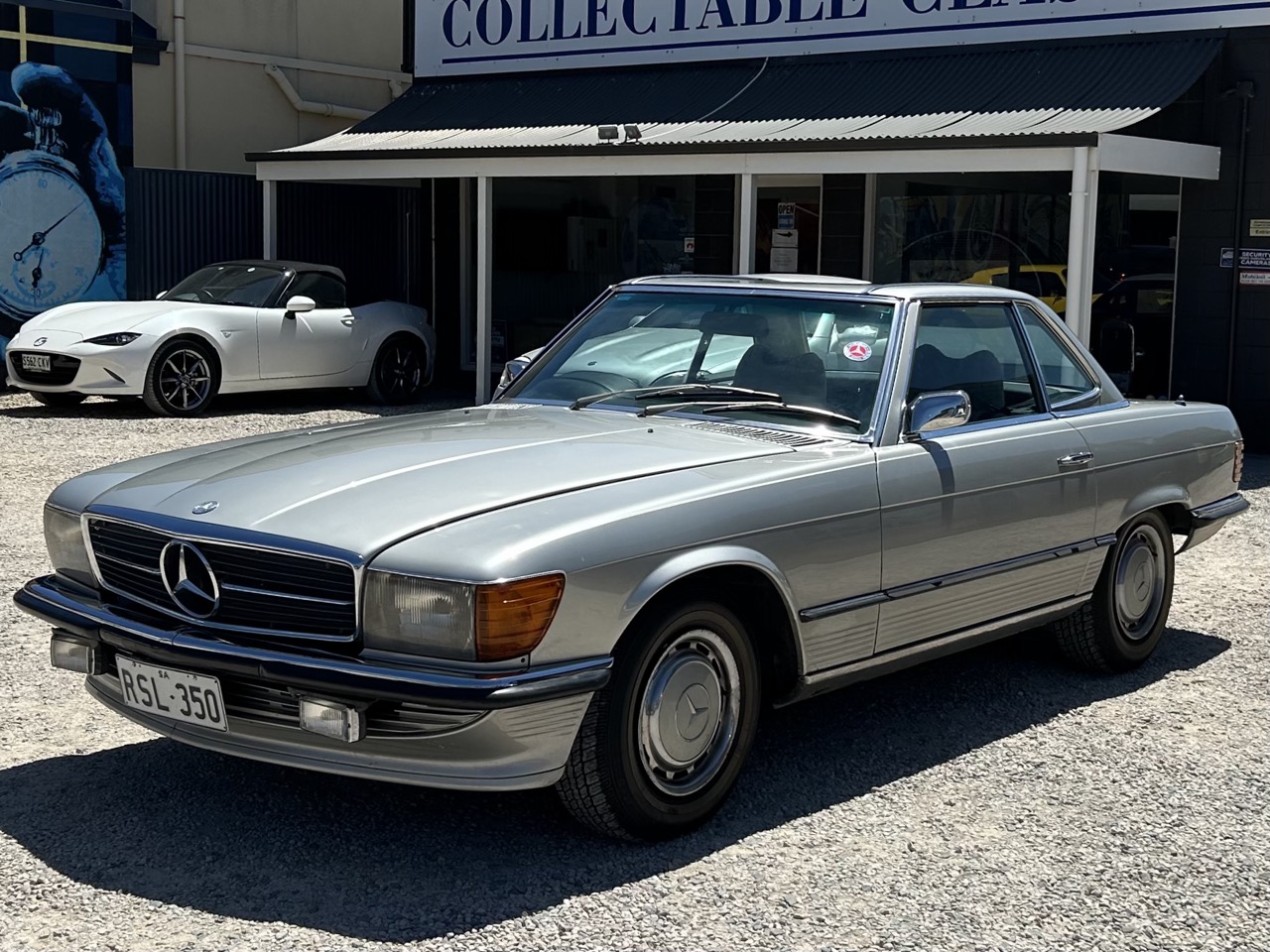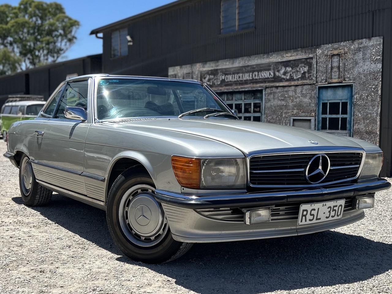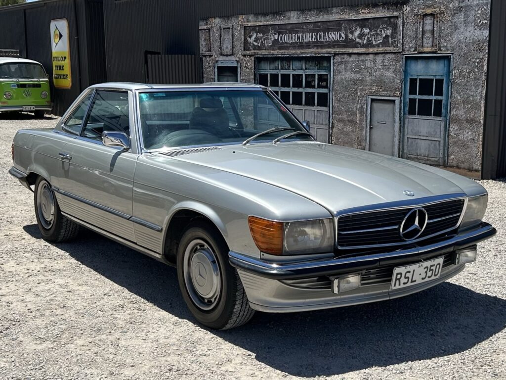 This 1972 Mercedes-Benz 350SL is a lovely example of a classic with modern features. Driven by a 3.5L fuel injected V8 and a 3-speed automatic this 350SL is an Australian delivered vehicle. The current owner has possessed the car for the last 20 years and driven and enjoyed it, but it is now surplus to needs. Finished in a brilliant silver, the 350SL was resprayed by one of the previous owners and still presents quite well for an older restoration, though it is certainly not new. The original blue leather interior has been protected by sheepskin seat covers, and demonstrates power steering, power windows, and an upgraded Kenwood radio, and air conditioning. The 350SL is a hard top convertible, and also comes with a soft top (needs restoring). There is a file of history to go with the car, and the number plates 'RSL350' are also available if the car is to stay in SA. Eligible for historic registration, enjoy substantially lower on-road cost as well as drive with like-minded enthusiasts. This is a fantastic option for those who want a modern classic car to continue their classic motoring journey in comfort.