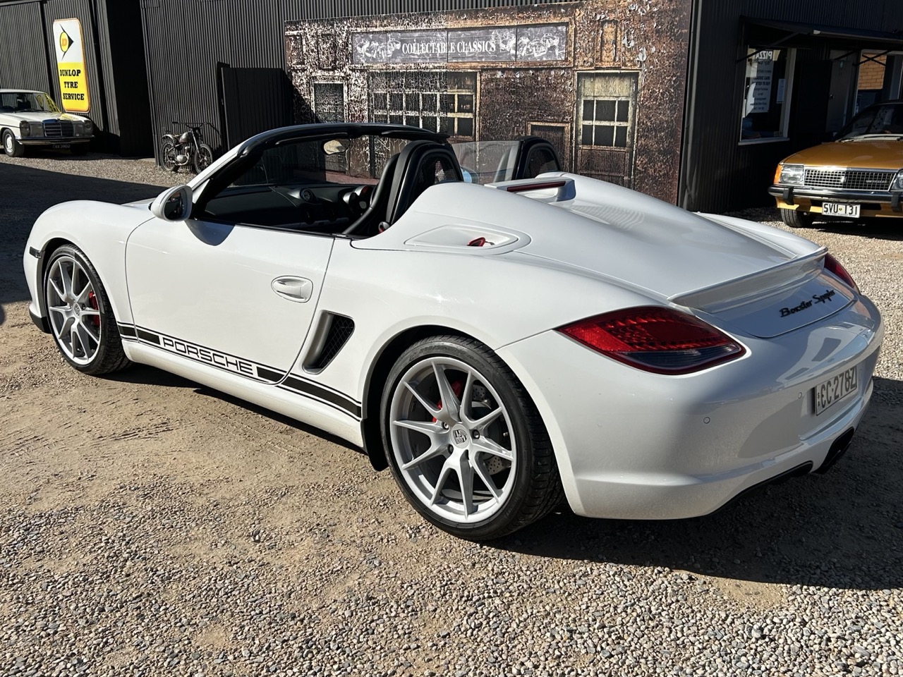 This 2010 Porsche 987.2 Boxster Spyder is one rare car, perfect for the Porsche collector. With only 1967 made globally, just 37 of these Boxster Spyders were delivered to Australia. They were an improved, lightweight version of the Boxster S, losing 80kg and gaining 10 hp. This unique Porsche is a one-owner vehicle, finished in White with a Black leather interior, accented brilliantly by pops of red. Like all Spyders, it is equipped with the mid-mounted 3.4L flat-six-cylinder motor. This is paired to a seven-speed dual-clutch PDK automatic transmission, with paddle shifters mounted on the steering wheel. The Boxter Spyder achieved a fantastic power-to-weight ratio thanks to its reduced curb weight of just 1275kg. This was managed through lighter door and body panels, 19" lightweight Porsche wheels, and a fully manual roof. A number of the interior features were also removed, but could be added back on per customer order. The Spyder also benefited from a lower ride height and Porsche Active Suspension Management, which improved the handling greatly. With very low km, complete books and a full service history, this is a great opportunity to own a rare, performance-focused Porsche.