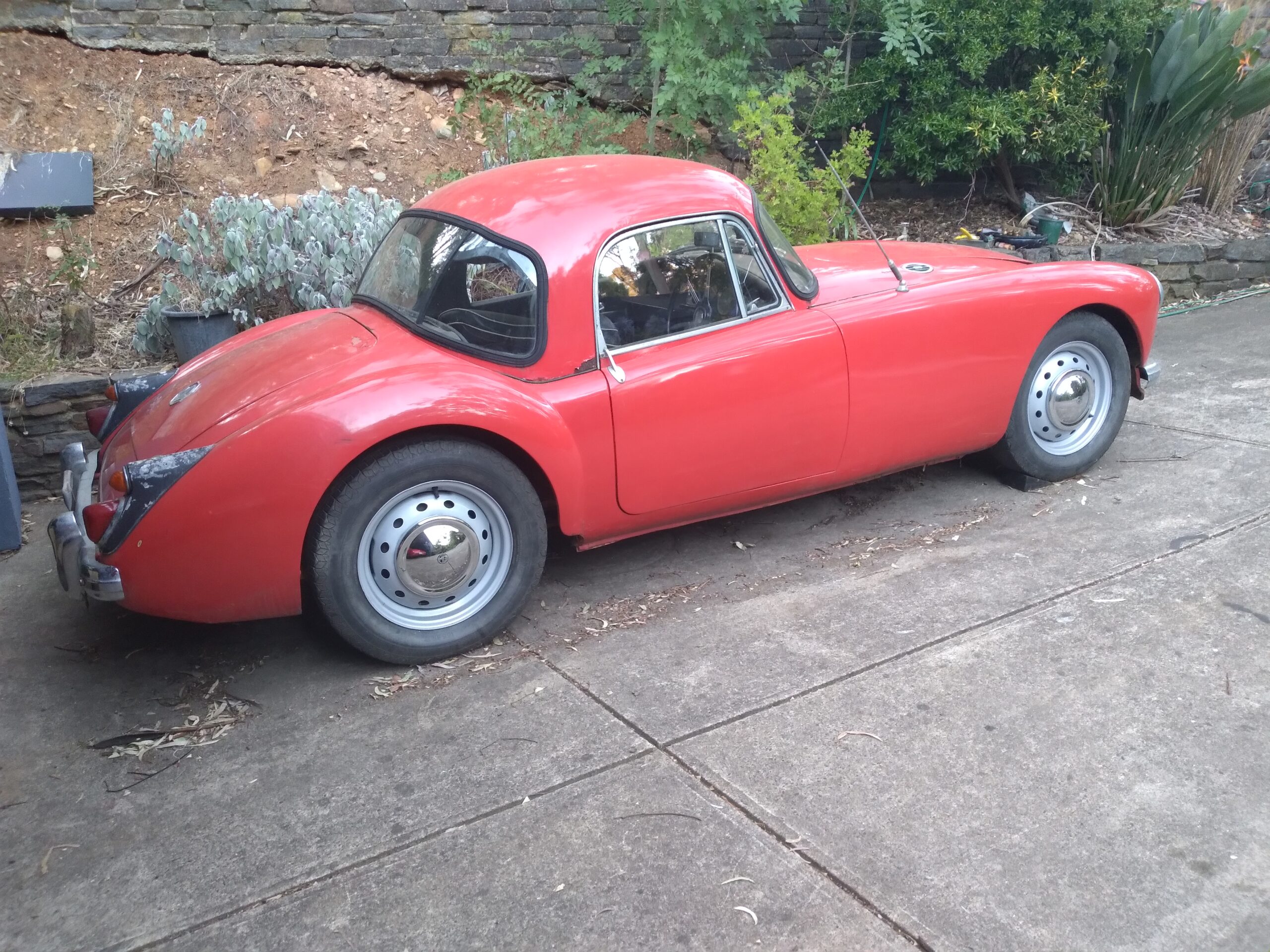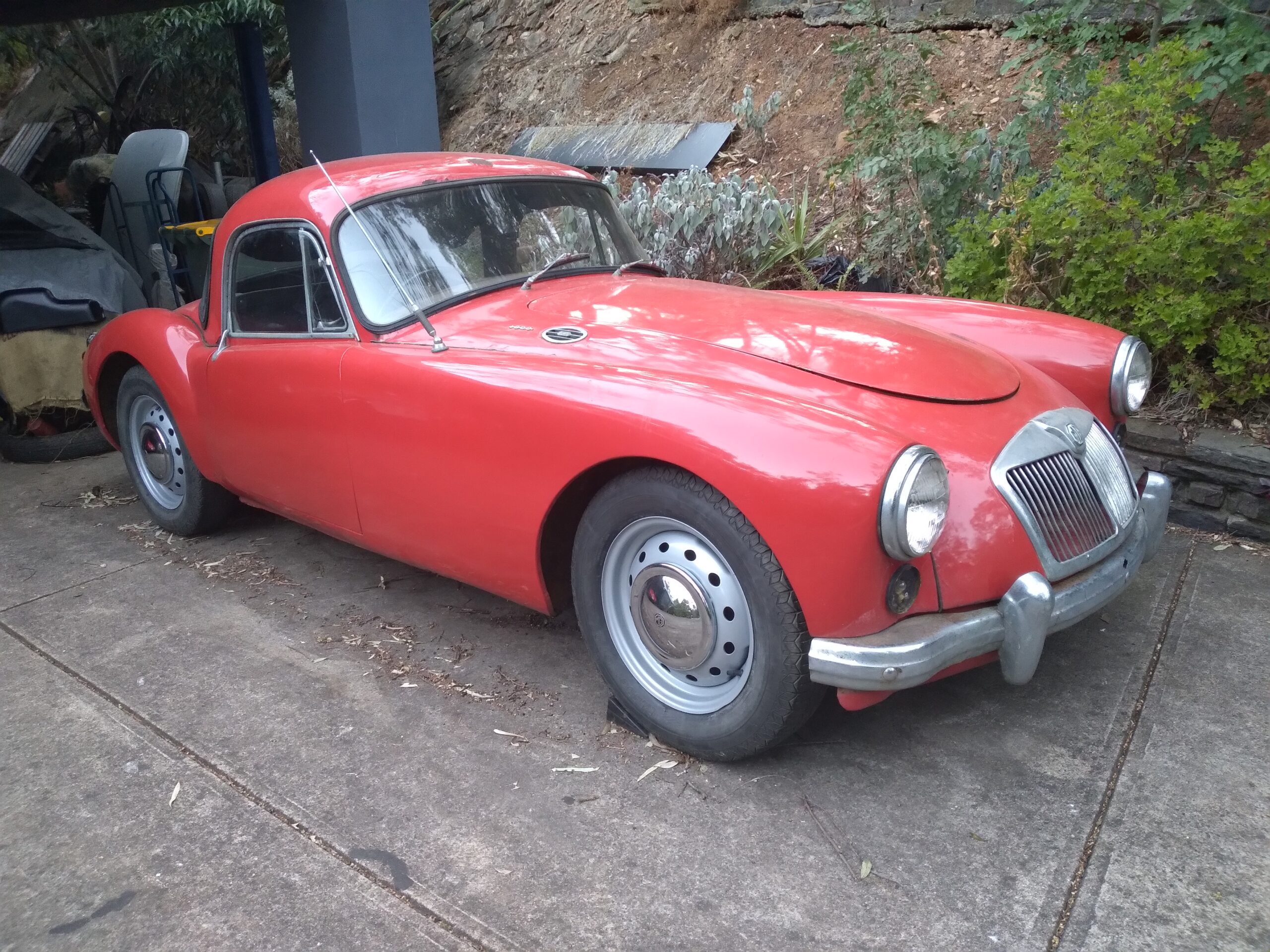 MGA COUPE' 1600 FACTORY FIXED HEAD . For RESTORATION . Excellent straight right hand drive with good seats , wheels tryres etc . Unregistered . All complete . No rust holes or signs of any damage Door gaps etc indicate no accidents . An easy restoration All chrome grill etc complete and in good condition .