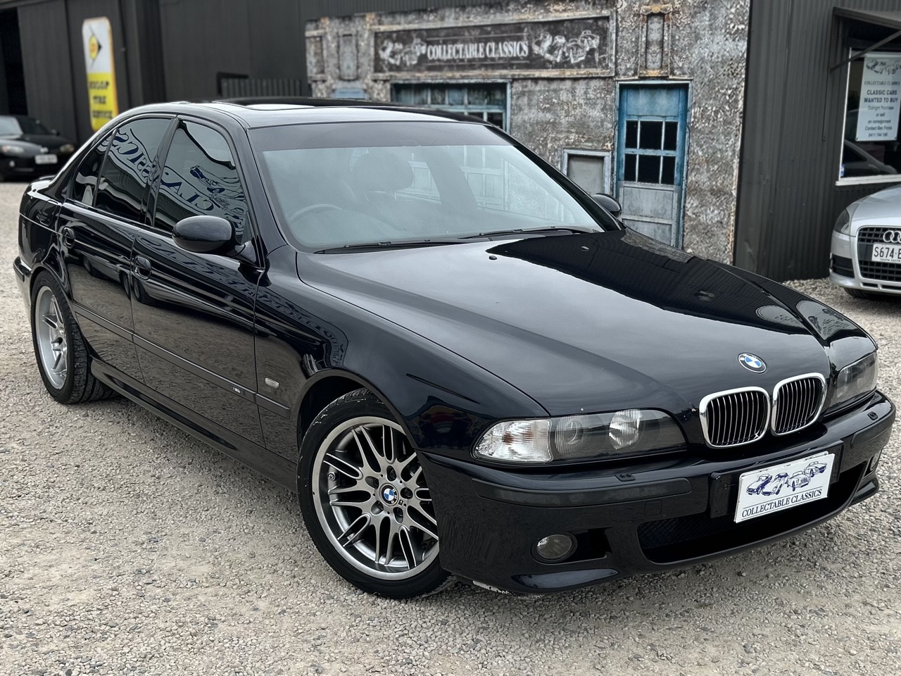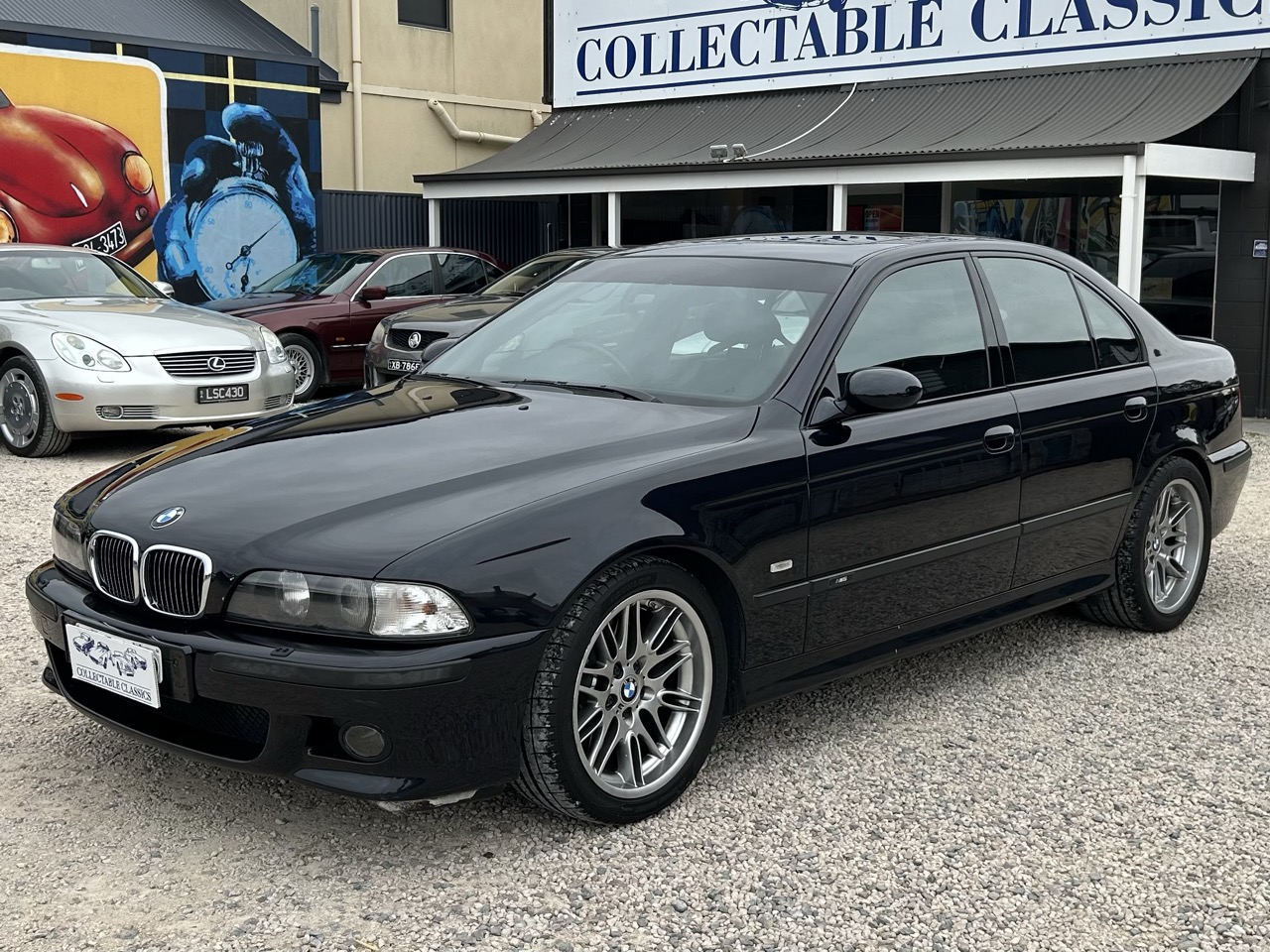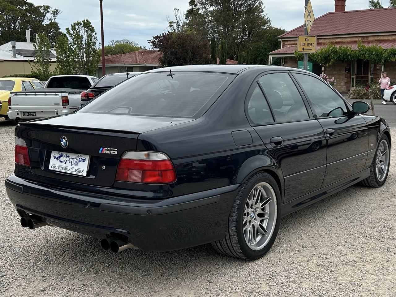 Just arrived - This 1999 BMW E39 M5 is a tidy original example. Originally sold by Bavarian Garage in the UK, the M5 was imported to Australia in 2005. Driven by a 4.9L 'S62' V8 and a 6-speed manual transmission, the M5 produced roughly 400hp from new. Finished in Carbon Schwarz Metallic, the M5 presents in fantastic condition for its age. The Silverstone leather interior features electric front seats with memory, heated front seats, integrated child seats in the rear, automatic climate control, a sunroof, dynamic stability control and the complete original toolkit. There is a complete history of its sale and life in the UK, receipts for maintenance here in Australia, along with full books and spare keys. Its large file demonstrates a life being well-kept, which is reflected in the car today. The M5 is also eligible for historic registration, which greatly minimises on-road costs. This is a very good example of M5 with all the fruits and wonderful history to back it.